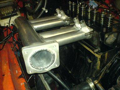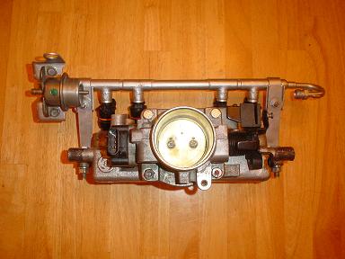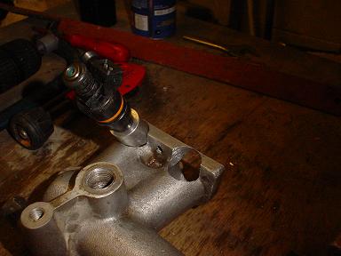 prepared The manifold after it had been machined to take the injectors. Gaping great 'oles in the alluminium were a bit offputting but necessary to fit the pockets to be welded in. |