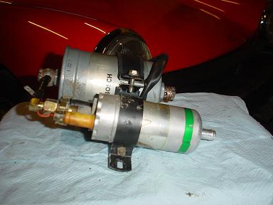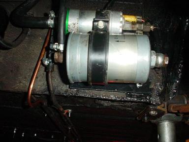 delivery This pump and filter assembly is from a Volvo 740. It fits the bill nicely as it will produce 3 bar+ and is a neat package to bolt up under the car. A swirlpot may be needed but for the meantime I shall just pump it straight up to the fuel rail. |