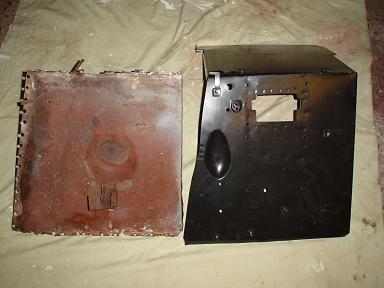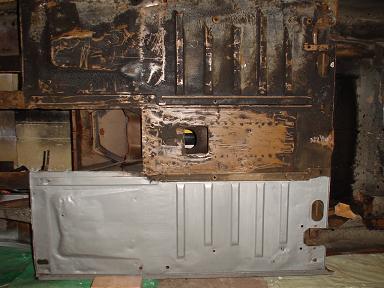 Top Out with the old and in with the new. Here the old and new footwell tops are placed side by side. Some major differences. Also, the front plate will be removed from the new panel; there's no point replacing good metal. |